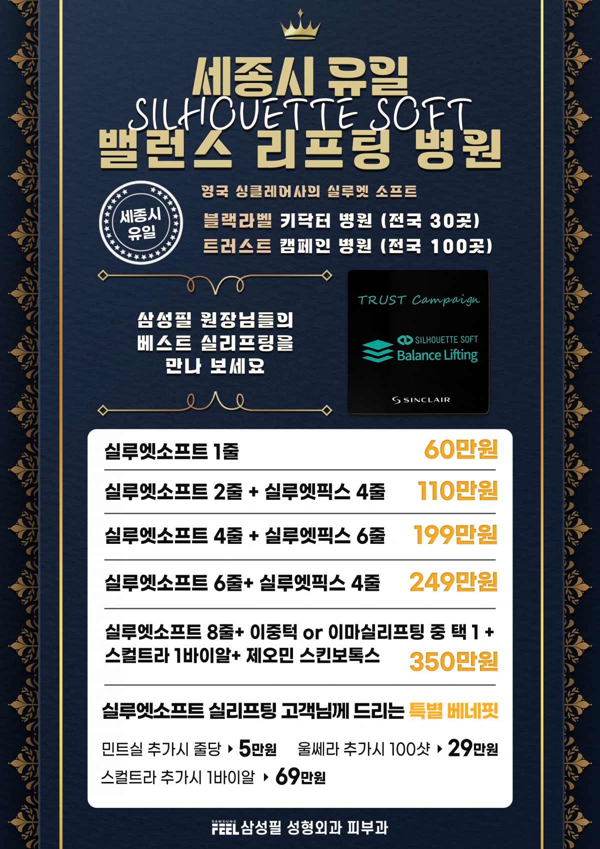 삼성필 성형외과의원의 진료시간을안내해 드립니다.